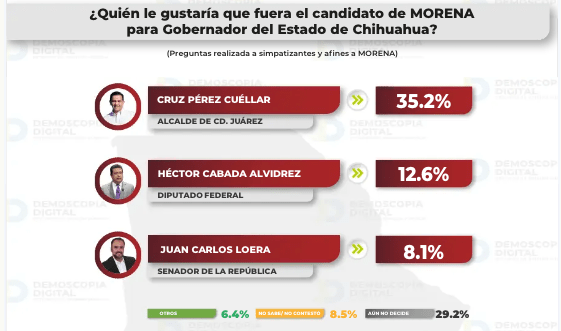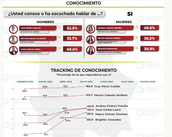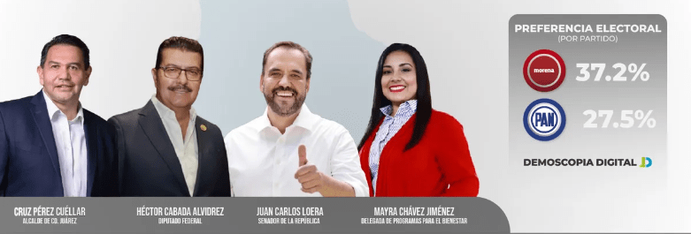 Cruz Pérez Cuéllar lidera rumbo a 2027 en Chihuahua; Morena tiene 37.2% de preferencia, seguido del PAN con 27.5%. Persistencia marca la diferencia.