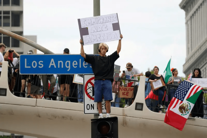 El desfile tuvo lugar en el contexto de un a jornada de masivas protestas bajo el lema «No Kings» («No a los reyes»), que se llevaron a cabo en decenas de ciudades y poblaciones del país, consideradas por muchos como las mayores que se han visto desde que Trump regresó al poder.