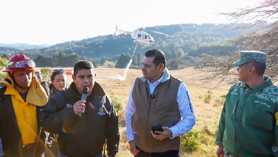 El gobernador de Puebla, Alejandro Armenta acudió al municipio de Vicente Guerrero para supervisar los trabajos para atender la emergencia provocada por el incendio de 150 hectáreas que inició el pasado domingo en esa zona y que se estima quede abatido en 72 horas.